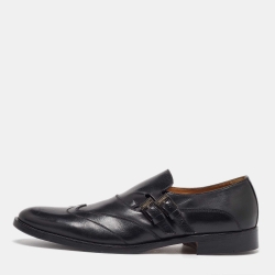 Versace Black Leather Mortimer Double Monk Strap Loafers Size 41