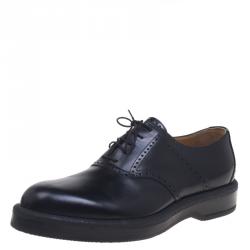 Hermes Black Brogue Leather Lace Up Oxfords Size 40