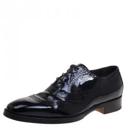 Hermes Black Patent Brogue Leather Lace Up Oxfords Size 43.5