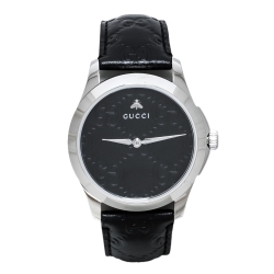 Gucci Black Stainless Steel Leather G-Timeless YA1264031 Men's Wristwatch 38 mm