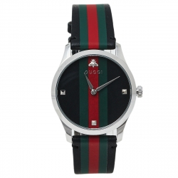 Gucci Green/Red Stainless Steel Leather 126.4 G-Timeless Automatic Men's Wristwatch 38 MM