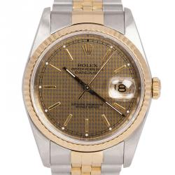 Rolex Datejust Watches | Luxury Timepieces at The Luxury Closet Remember Richard Gere's character in Pretty Woman—a suave billionaire in a crisp suit, exuding smooth style with a Rolex Datejust on his wrist. No flashy moves, no need to try—just cool confidence sealed with a signature high-class timepiece. That's the essence of the Datejust: quiet luxury, bold presence. ... Read More Discover the Iconic Rolex Datejust Step into a world of timeless elegance with the Rolex Datejust, a watch that has epitomized luxury since its debut in 1945. As the first mechanical wristwatch to feature an automatically changing date window, the Rolex Datejust revolutionized horology, setting a benchmark for innovation and style. Its classic design and impeccable craftsmanship have made it a favorite among watch enthusiasts, from the refined Men's Rolex Datejust to the versatile Men's Datejust Rolex options. Since its introduction, this legendary timepiece has graced the wrists of statesmen, visionaries, and style leaders. From the boardroom to black-tie events, the Rolex Datejust is a subtle yet elegant way to convey that not only are you super rich but also super stylish. At The Luxury Closet, we bring you a world-class selection of pre-owned Luxury Datejust Watches—from elegant men's Rolex Datejust models to rare Rolex Day Datejust editions and investment-worthy Rolex Datejust Diamond pieces at never-heard-before prices. Selection of Rolex Datejust Watches To Suit Your Preference and Choice