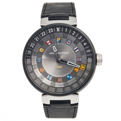 Louis Vuitton Grey Stainless Steel Alligator Tambour World Time Q1055 Men's Wristwatch 44 mm