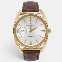Bernhard H.Mayer Silver Rose Gold PVD Plated Stainless Steel Leather Mecanique BH30/CWR Men's Wristwatch 44 mm