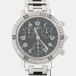 Hermes Clipper Chronograph CL2.910 Quartz Black Stainless Steel Men's Wristwatch 38mm