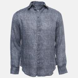 Armani Collezioni Blue/White Printed Cotton Long Sleeve Shirt M