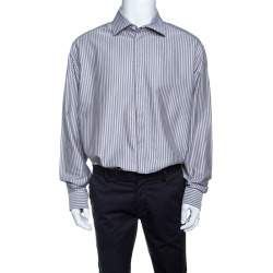 Armani Collezioni Navy Blue Striped Cotton Shirt XXL
