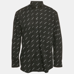 Balenciaga Black All-Over Logo Print Cotton Button Down Full Sleeve Shirt M