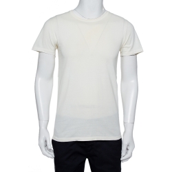 Balmain Cream Cotton Distressed Crewneck T-Shirt S