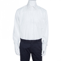 Balmain Off White Striped Cotton Long Sleeve Button Front Two Ply Shirt L