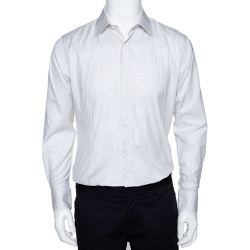 Balmain Off White Checked Herringbone Cotton Long Sleeve Shirt M