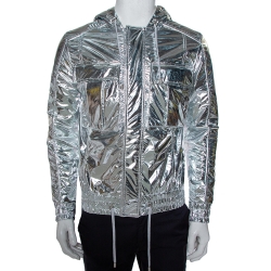 Balmain Metallic Synthetic Drawstring Hooded Jacket XS