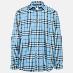 Burberry Blue Checked Cotton Long Sleeve Shirt XL