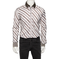Dolce & Gabbana Brown Diagonal Striped Cotton Contrast Silk Collared Shirt L