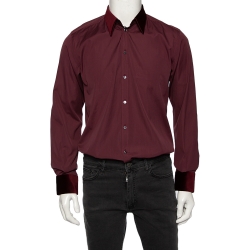 Dolce & Gabbana Burgundy Cotton Velvet Collar Martini Shirt M
