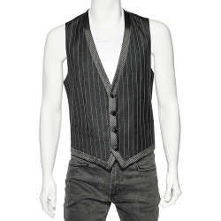 Dolce & Gabbana Charcoal Grey Striped Wool Contrast Trim Vest M