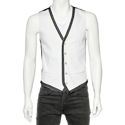 Dolce & Gabbana Monochrome Cotton Embroidered Trim Detailed Vest M