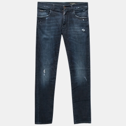 Dolce & Gabbana Blue Distressed Denim Crest-Embroidered 14 Stretch Jeans M Waist 32"