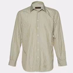 Etro Green Striped Cotton Button Front Shirt L