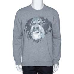 Givenchy Grey Knit Rottweiler Print Cuban Fit Crew Neck Jumper S