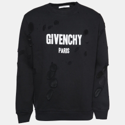 Givenchy Black Distressed Cotton Logo Print Sweatshirt M