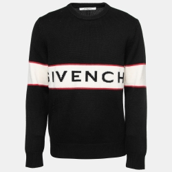 Givenchy Black Logo Band Intarsia Wool Knit Sweater L