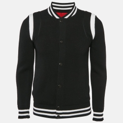 Givenchy Black Logo Intarsia Back Wool Knit Bomber Jacket S