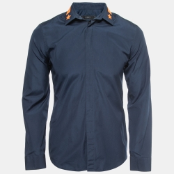Givenchy Navy Blue Cotton Star-Embroidered Collar Button Front Shirt M