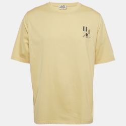 Hermès Yellow Leather Applique Jersey Crewneck T-Shirt XL