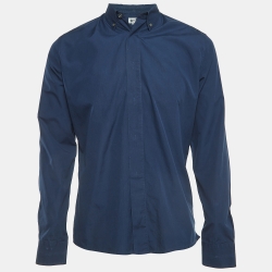 Hermes Blue Cotton Fly Front Full Sleeve Shirt M