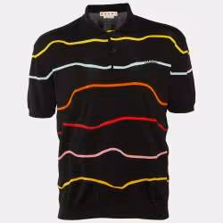 Marni Black Wave Cotton Knit Polo T-Shirt M