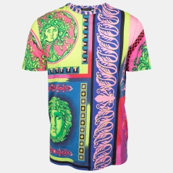 Versace Multicolor Medusa Printed Cotton Short Sleeve T-Shirt XS
