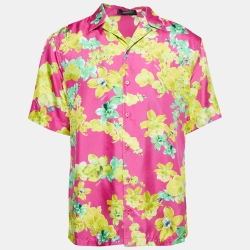 Versace Pink Orchid Print Silk American Fit Shirt L