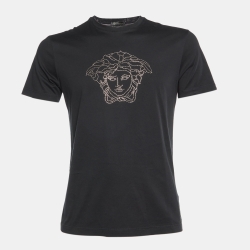Versace Black Cotton Medusa Embellished Crew Neck T-Shirt S