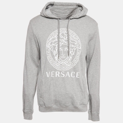 Versace Grey Medusa Print Cotton Knit Hoodie XL