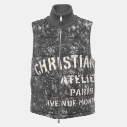 Dior Grey Printed Cotton Fleece Puffer Vest L
