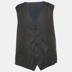 Dolce & Gabbana Navy Blue Wool and Silk Formal Vest XXXL