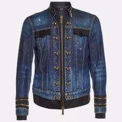 Dsquared2 Navy Blue Raw Edge Layered Denim Jacket M