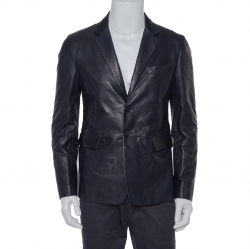 Prada Powder Blue Leather & Nylon Triangle Logo Reversible Jacket L