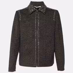 Valentino Brown Studded Wool Tweed Zip-Up Jacket L