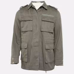 Valentino Khaki Green Studded Gabardine Cotton Utility Jacket XXL