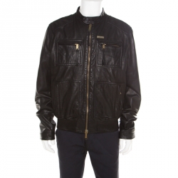 Dsquared2 Black Goat Leather Zip Front Biker Jacket 3XL