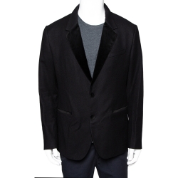 Dolce & Gabbana Black Wool Velvet Trim Button Front Blazer XL