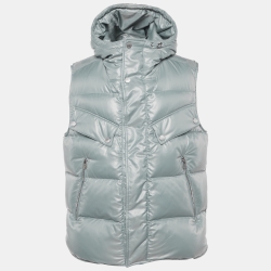 Dior Homme Grey Nylon Leather Trim Down Jacket M