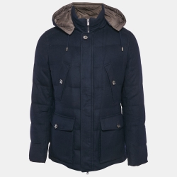 Brunello Cucinelli Navy Blue Cashmere Detachable Hood Down Jacket S