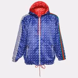 Gucci x Adidas Red/Blue Monogram Print Synthetic Reversible Jacket XS