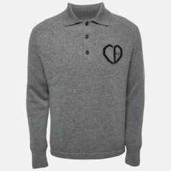 Dior Grey Wool Applique Detail Long Sleeve Sweater L
