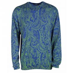 Etro Blue Paisley Knit Crew Neck Sweater XXL