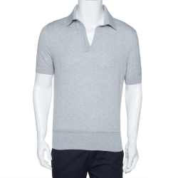 Tom Ford Grey Rib Knit Cotton V Neck Polo T-Shirt L