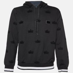 Dolce & Gabbana Black Crown Flock Print Cotton Hooded Sweatshirt L